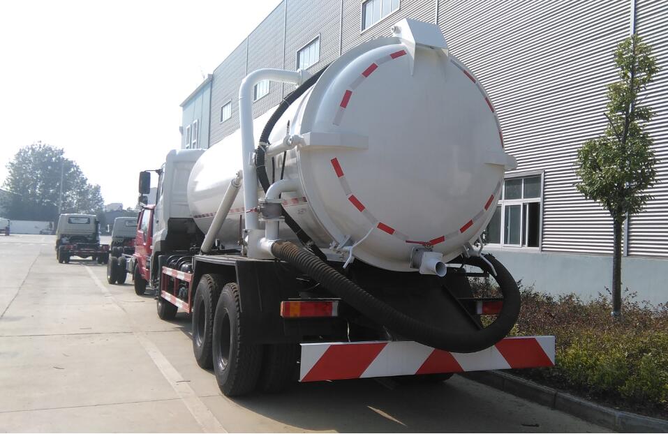 吸污車專用部分由 真空吸污泵、取力器、傳動軸、水氣分離器、油氣分離器、多路換向閥、罐體、放污閥、視污窗、真空壓力表、管網系統、液壓系統 等組成。